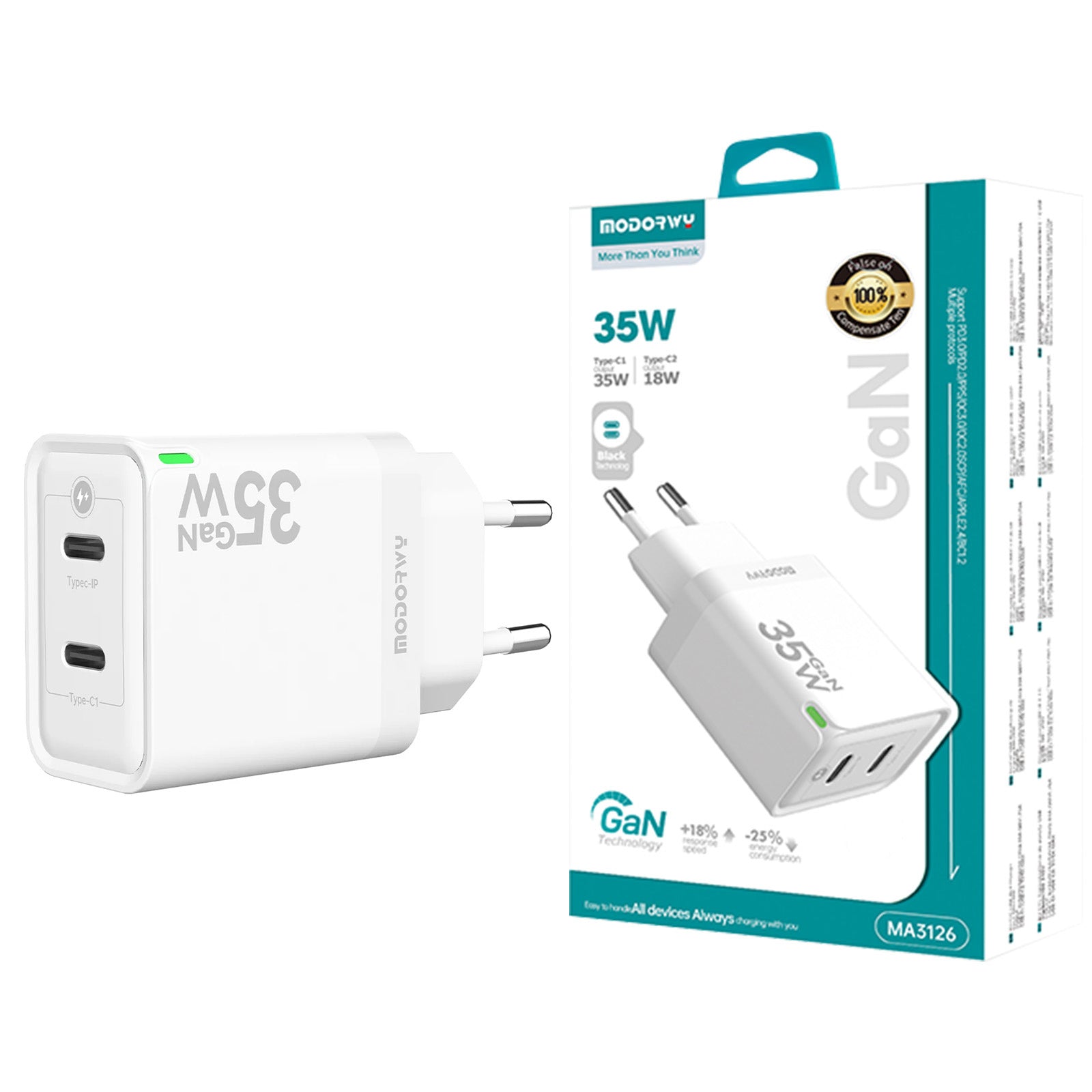 Carregador 35W Dupla entrada de PD